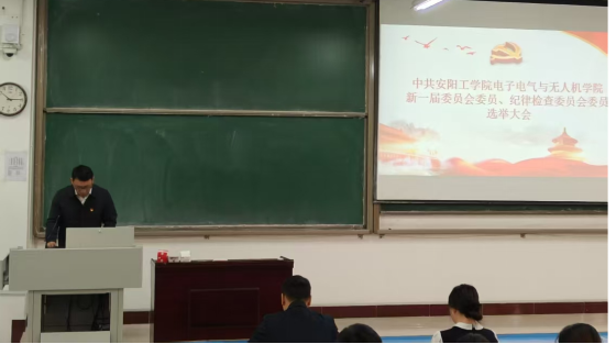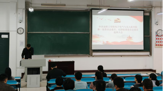 4月24日,电子电气与无人机公司党委在A19-104组织召开第一届委员会委员、纪律检查委员会委员选举大会。公司全体师生党员、预备党员共计124人参加,大会由张涵同志主持。