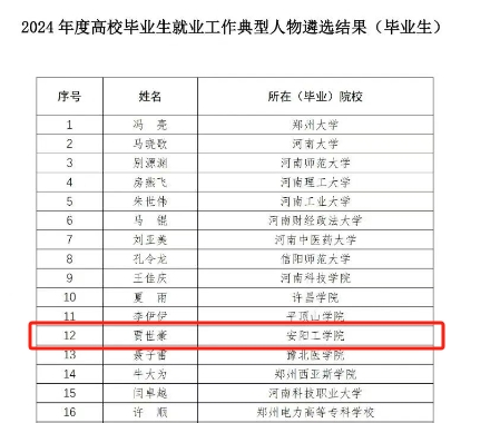 近日,河南省教育厅公布了 2024 年度高校毕业生就业工作典型人物(毕业生)名单,365英国上市集团贾世豪凭借出色表现成功入选。