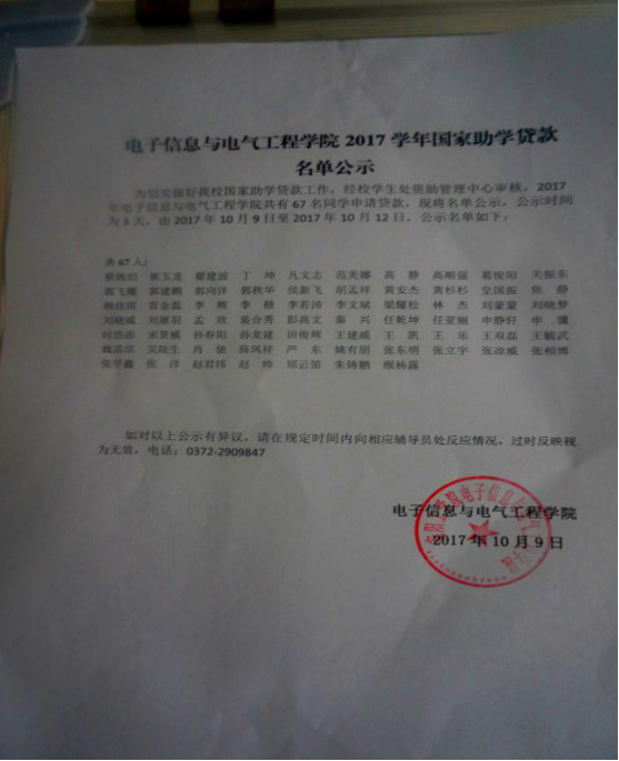 如对以上公示有异议,请在规定时间内向相应辅导员处反应情况,过时反映视为无效,电话:0372-2909847
