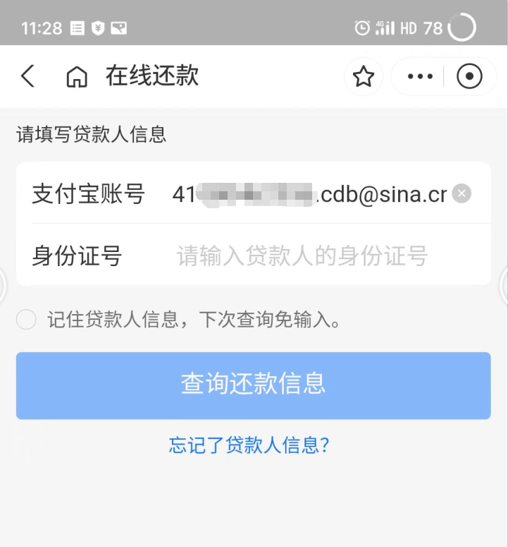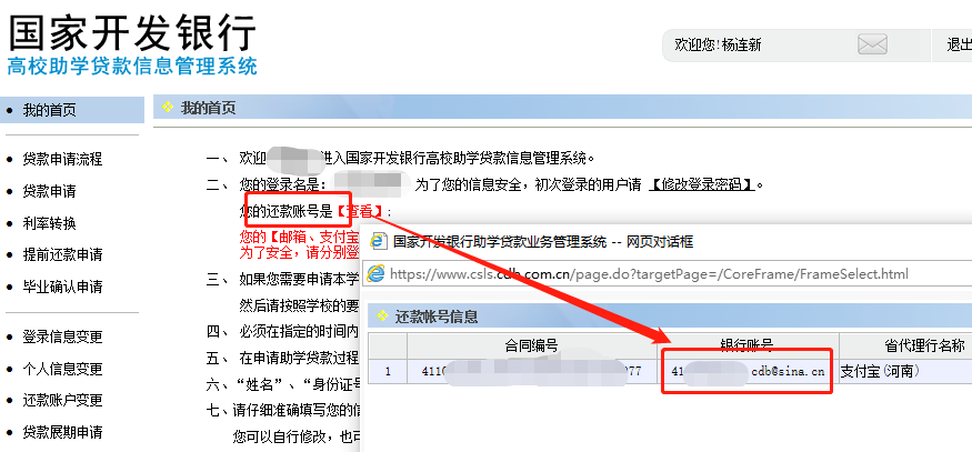 2.输入还款的支付宝账户,注意该账户为助学贷款系统中的账户,在员工在线服务系统中查看: