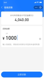 进入还款页面后,可以输入本次还款金额,会根据输入金额自动拆分对应的本金和利息。