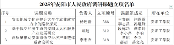 近日,根据《安阳市发展研究中心关于公布2025年度安阳市人民政府调研课题立项名单的通知》,2025年度我3课题立项