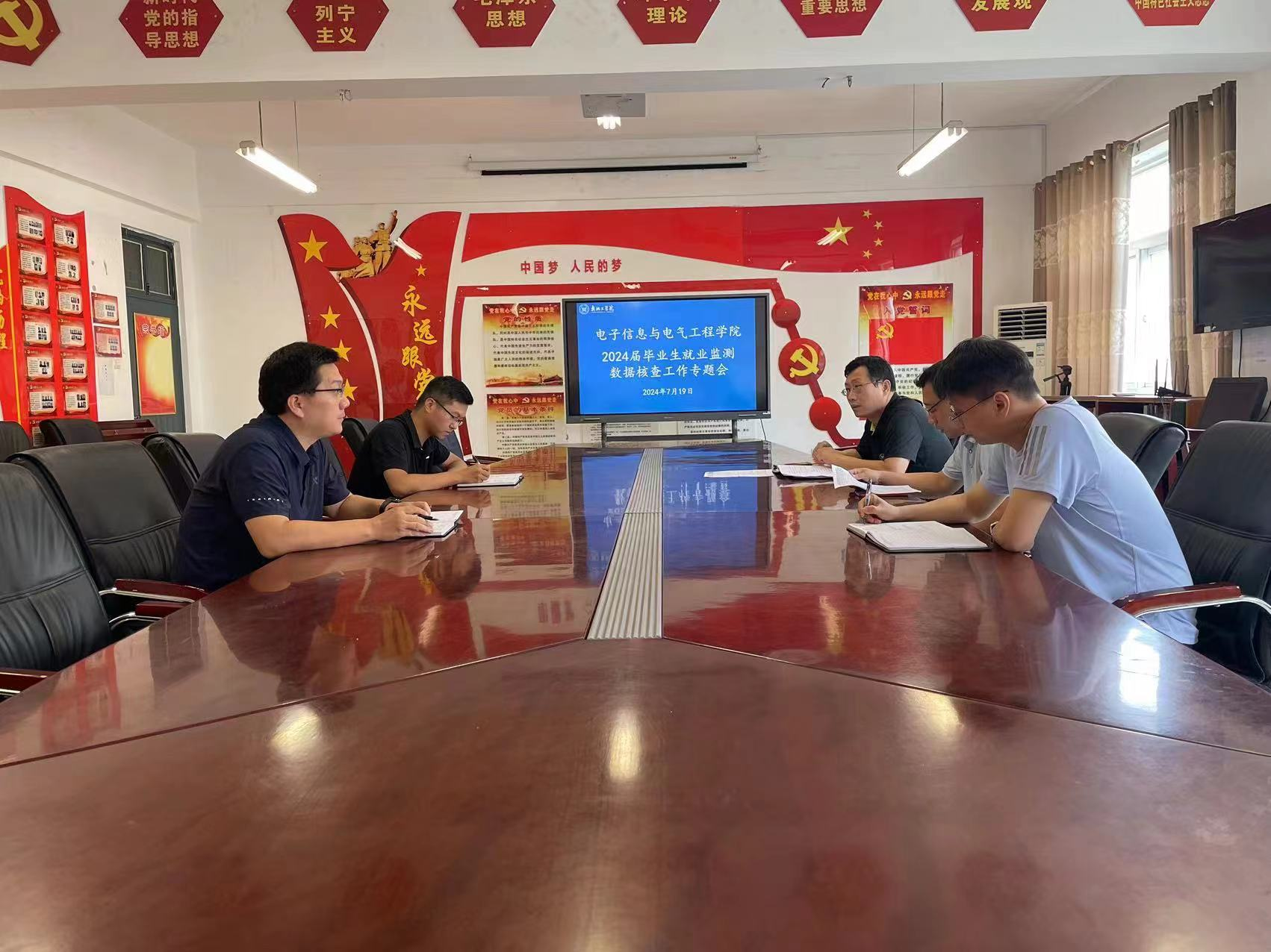 为贯彻落实省教育厅通知要求和365英国上市集团2024届毕业生就业监测数据核查工作安排,电子信息与电气工程公司高度重视就业监测数据核查工作,于2024年7月19日公司经理董昭组织召开专题会议研究部署就业监测数据核查工作,党总支副书记张涵、副经理李立及相关教研室主任参加本次会议。